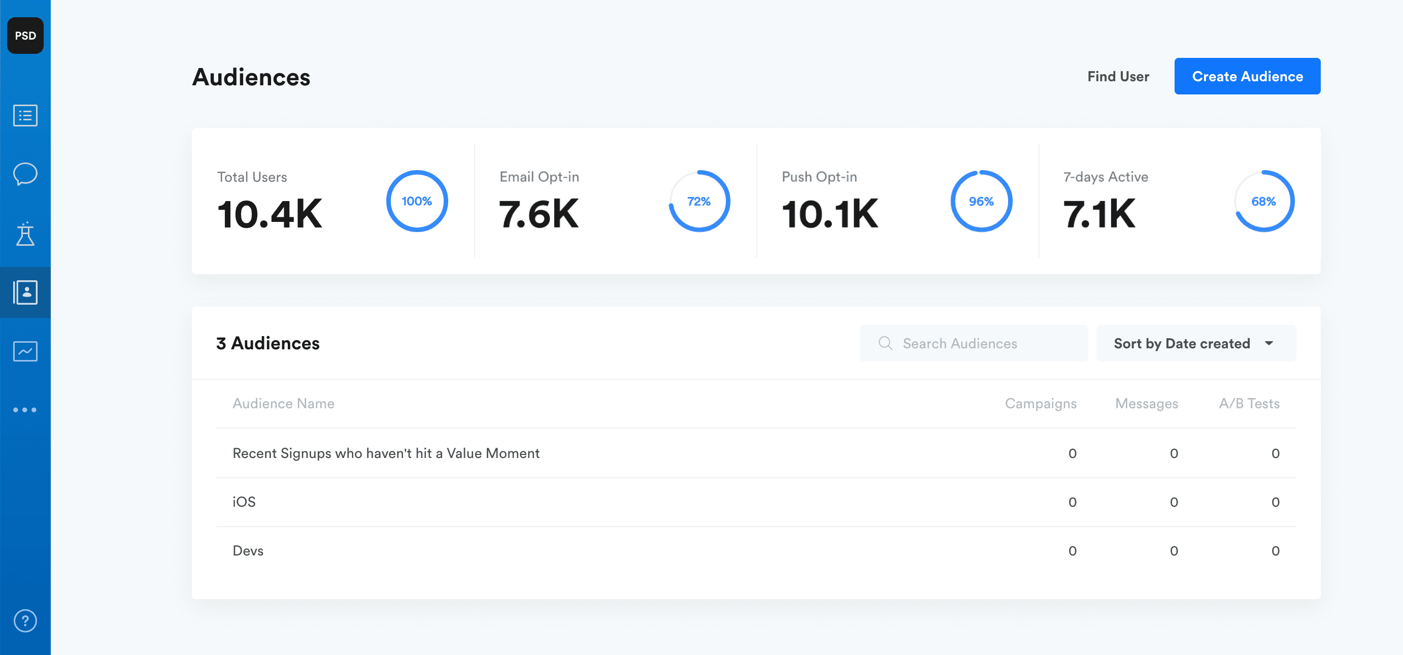 Once the export completes, you will see an Audience reflecting the set of users from your Mixpanel cohort. (e.g. “Recent Signups who haven’t hit a Value Moment”)