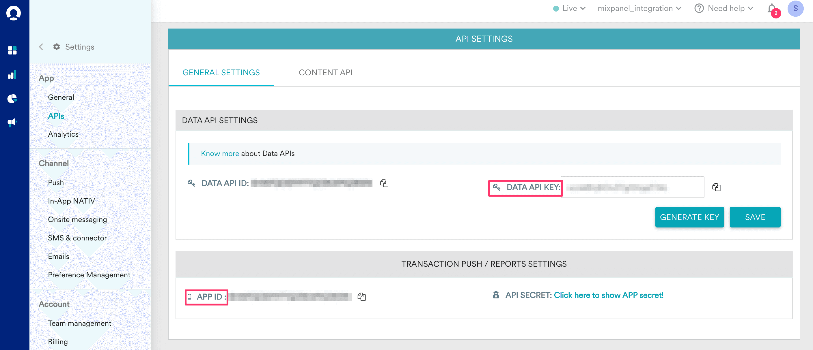 - Username: MoEngage APP ID