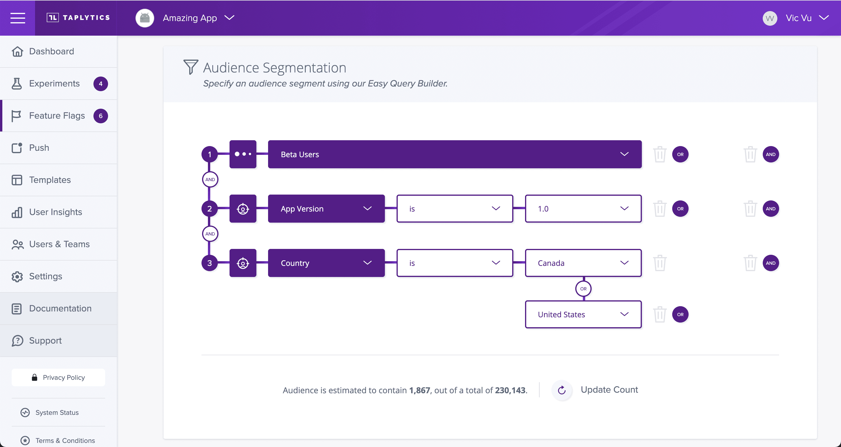 Once the export completes, you will see a Segment reflecting the set of users from your Mixpanel cohort in Taplytics’s Segment editor, as custom data (e.g. “Beta Users”):