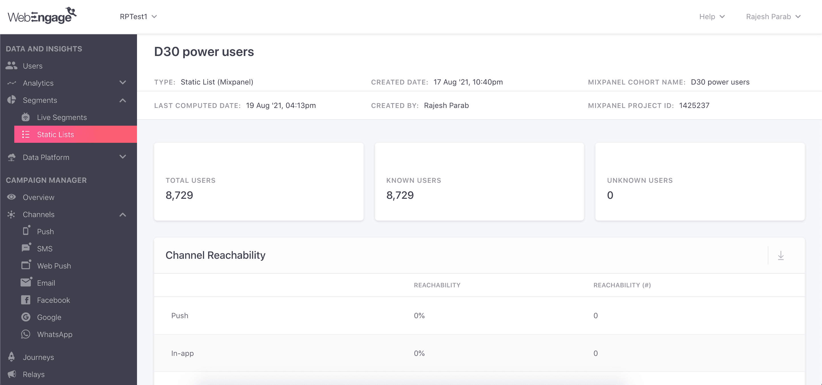 The exported users are properly mapped in WebEngage’s system only if the resolved distinct_id in Mixpanel and the User ID in WebEngage have the same value. If no match is found, WebEngage will create new user profiles for the users exported from Mixpanel.